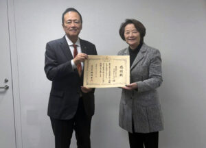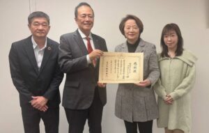 2025年12月10日 世田谷区へのチャージマン本体、ソーラーパネル、ジェネレターの寄贈が評価され、世田谷区長より感謝状を授与されました。